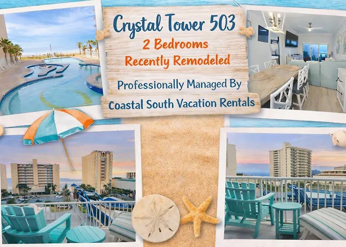 O Gorgeous Completely Renovated 2 Bedroom Condo At Crystal Tower! Gulf Shores está localizado a uma distância de 2.9 km de Alabama Gulf Coast Zoo e a aproximadamente 25 minutos a pé de Souvenir City. Este apartamento dispõe de piscina aquecida e de terraço para o conforto dos hóspedes.